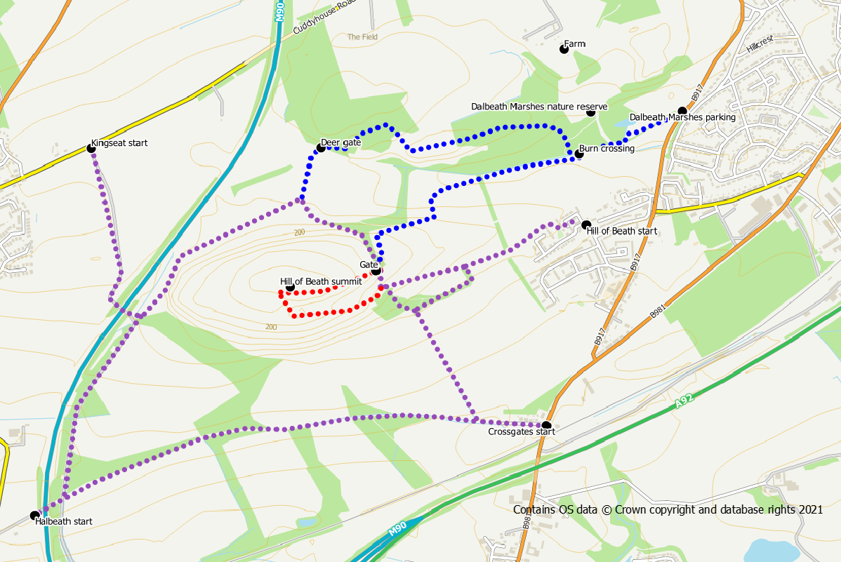 On it’s own, the hill is a somewhat short outing and combining it with a walk around the Dalbeath Marshes Nature Reserve is highly recommended.
